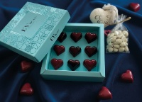 Съдържа 9 сърцевидни шоколадови бонбона в два вкуса